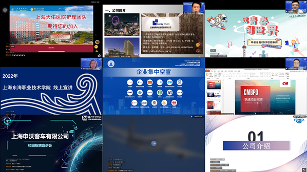 这场网络双选会的启动仪式上,学校同步开展企业直播带岗,从369家报名企业中挑选出产业布局与学校专业设置匹配度高、行业内有一定规模的优质企业进行重点推介。同济大学附属天佑医院、平安普惠信息服务有限公司、国旅运通航空服务有限公司、上海申沃客车有限公司等16家企业应邀参加,我校640余名毕业生通过云端来到现场,与企业嘉宾隔空交流, 积极自我推荐。16家企业嘉宾全方位立体式呈现了工作环境、企业文化、职业发展等,介绍企业需求、人才培养机制、发布就业岗位、简历投递方式等信息。据不完全统计,此次直播带岗涵盖了交通、制造、贸易、会计、行政管理、金融等专业领域61个职位,为毕业生提供了1140余个就业岗位,现场投递简历587份,搭建了毕业生与企业线上面对面交流的桥梁,精准对接用人单位与毕业生需求。