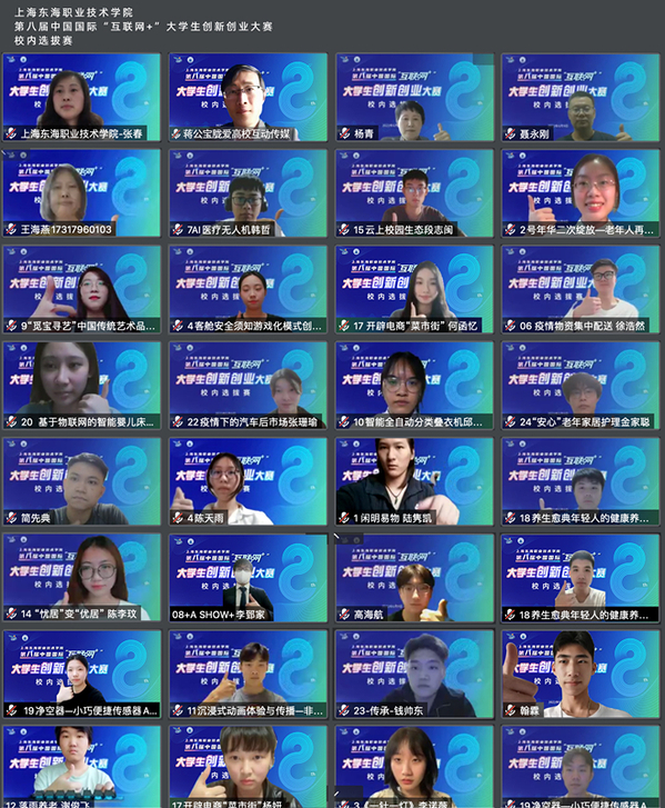 69日晚上,上海东海职业技术学院2022年第八届中国国际“互联网+”大学生创新创业大赛校内选拔赛通过腾讯会议顺利落下帷幕。上海青创大学生创业服务基金会办公室主任王海燕、上合-上海创业港顾问、上海市高校实践育人创新创业基地联盟优秀指导教师杨青、上海华前人才服务有限公司总经理,第七届国际互联网+大学生创新创业大赛上海赛区评委聂永刚等专家担任评委,各二级学院直属党支部书记、项目指导老师、团委、就业办及参赛创业团队共计60余人参加。