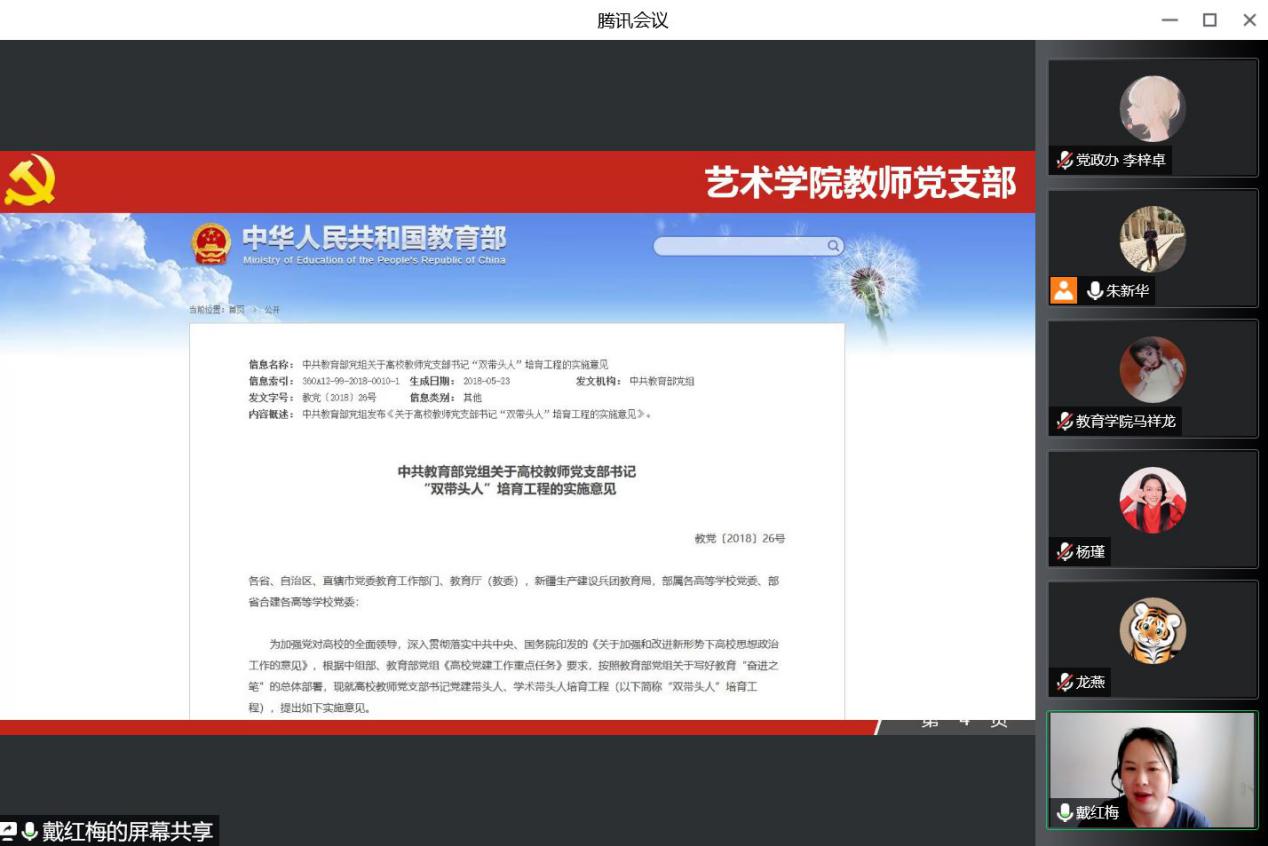 为进一步加强党支部书记“双带头人”队伍建设,提升基层党建工作质量,8月4日,校党委组织部在腾讯会议开展线上专题培训会。上海中侨职业技术大学艺术学院党总支书记、副院长戴红梅副教授应邀主讲,我校各党支部书记、副书记参加培训。
