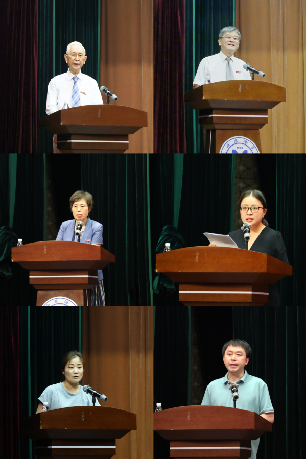 2022年上海市高职高专院校教师教学能力大赛获奖团队——经管学院教师代表高静,2020-2021年度“优秀教育工作者”荣誉称号获得者、辅导员代表孙菁和招生办公室主任蔡建平分别上台发言。高静说,此次大赛备赛时间短、参赛内容多、评审要求新,在校院两级领导大力支持下,现代物流管理教研组参赛团队始终相互鼓励,精益求精,最终呈现出构思新颖的教学设计,获奖成绩的取得离不开团队成员的共同努力与付出。孙菁表示,学校提供的平台及工作中的历练让自己实现了由“知岗”到“爱岗”的转变,2022年上半年的抗疫更是让自己练就了过硬本领,深化对辅导员岗位理解和职业价值的认知,表示未来将以强烈的使命担当,实干笃行,为东海美好的明天增砖添瓦。蔡建平是一名在东海工作了16年的教师,他分享了与团队扎根招生工作团结拼搏的历程及自己工作的所思所想,表示将和团队成员进一步拓展思路,不断增强服务和责任意识,以更加坚定的信心和责任感投身于学校教育事业发展,为广大学生健康成长服务。