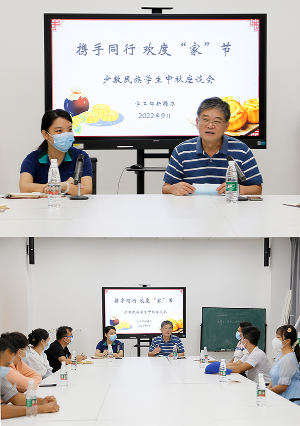 一年中秋至,又见圆月时。为使广大学生了解中华民族传统节日的文化内涵,增强学生爱国爱校爱家情怀和民族责任感。9月10日上午,我校少数民族学生代表中秋座谈会在学生发展中心召开。校长王刚、学工部部长杨瑾、新疆办主任孔国锋、内派教师张艳琦、少数民族专职辅导员以及我校各民族学生代表20余人参加了此次座谈会。会议由杨瑾主持。