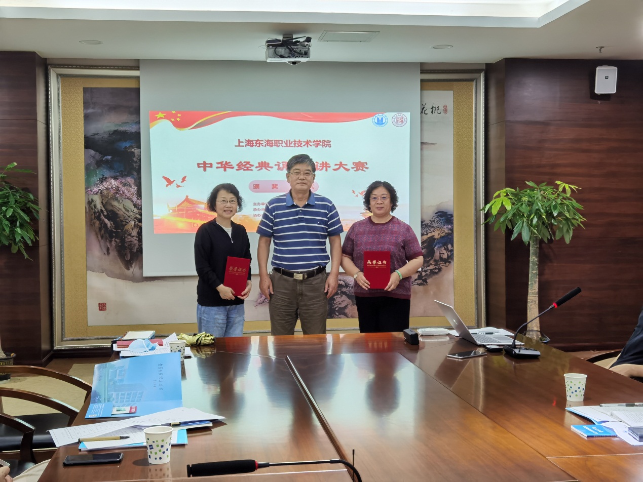 大会还举行了“2022年上海东海职业技术学院诵写讲大赛”闭幕式暨颁奖仪式,王刚为获奖选手所在学院领导代表颁奖,委员们共同赏析了入围国赛的获奖作品《渔家傲·秋思》,共同领略中华古诗词的独有魅力。