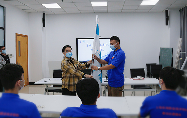 孔国锋向服务队成员们介绍了“青羽”志愿服务队成立的初衷及意义。他表示,“青羽”这个名称的由来,是因为我们的成员都来自家庭经济困难的受助学生,大家在接受国家和社会帮助的同时愿意用自己的努力将爱心和希望传递,让自己变得强大而勇敢。就像雏鹰,虽然生长的环境并不优渥,但依然不畏艰难,奋力展翅,翱翔天空。他说“青羽”志愿服务队存在的意义,就是希望给更多受助学生提供平台和机会,让学生们在积极参与志愿服务的同时,提升个人素养,开拓创新能力。