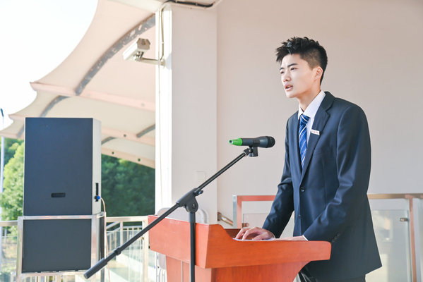 新生代表航空学院空乘225班学生李建民、学长代表经管学院学生魏之韵分别在典礼发言。