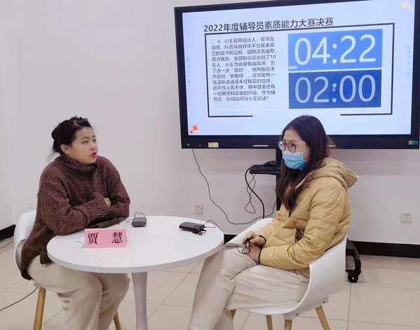 12月9日,2022年度辅导员素质能力大赛决赛在大学生发展中心举办,各学院直属书记、全体辅导员出席观摩。社科部主任龙燕、学生工作部部长杨瑾、学生工作部副部长王莉娜担任决赛评委。
