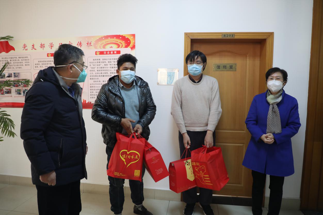 慰问中,校领导对大家一年来的辛勤工作表示充分肯定,对大家寒假期间坚守一线表示衷心感谢,并叮嘱大家在全力做好本职工作的同时,合理安排作息,注意自身安全健康。