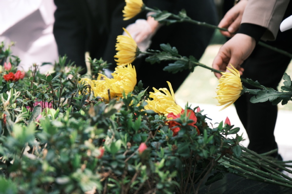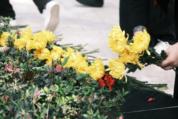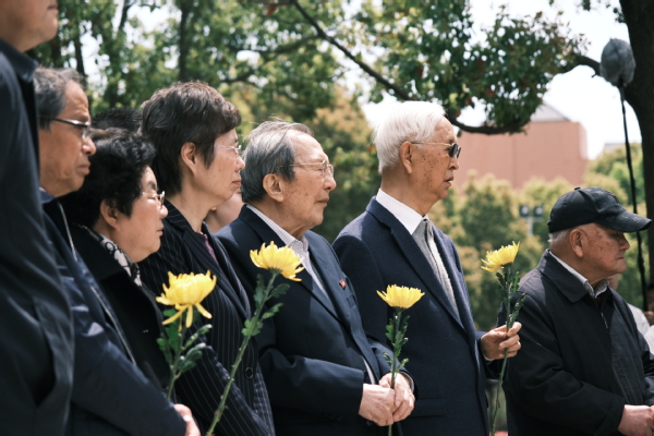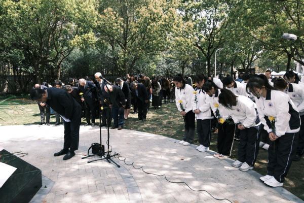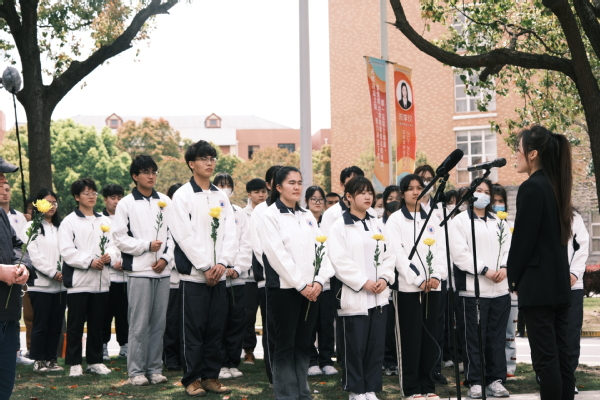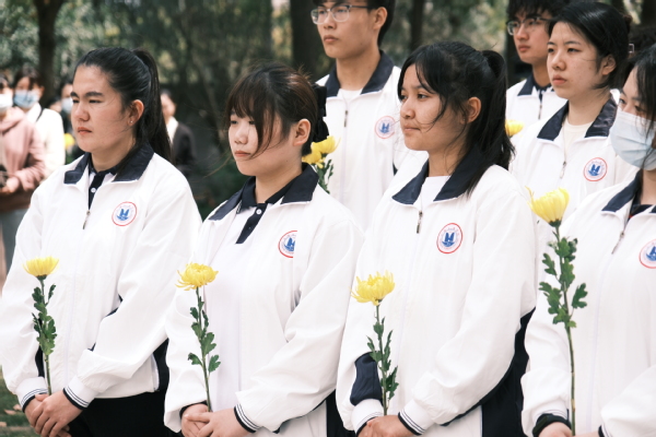 最后,校董事代表与党政领导代表全体教职工向夏老敬献花篮。参加仪式的师生代表怀着崇敬的心情向夏老铜像三鞠躬,依次献上菊花,表达缅怀之情。
