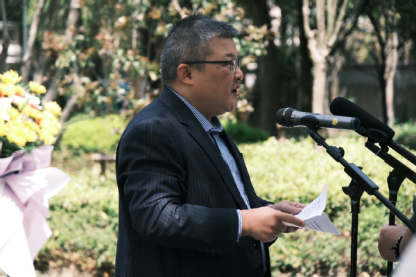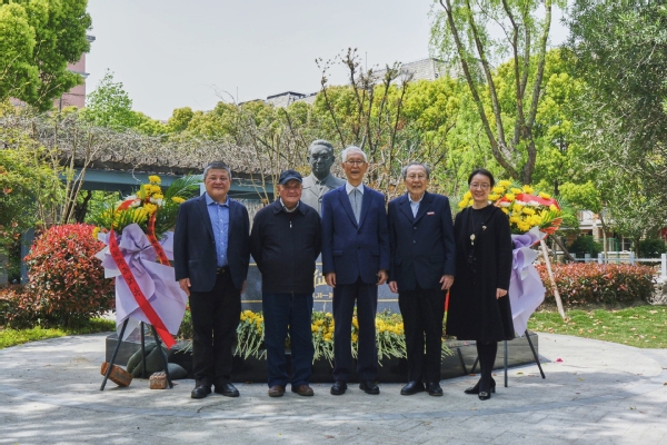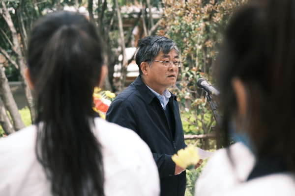 4月3日中午,东海学院老校长夏征农同志铜像前鲜花掩映。在庄严肃穆的氛围中,学校董事会领导、党政领导和师生代表怀着崇敬的心情,来到文化长廊参加夏老铜像祭扫仪式。祭扫仪式由校长王刚主持。