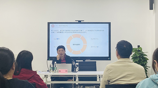 数字信息时代,时间维度被打破,“爱与思考”穿插无数的时间碎片之间;知识爆炸,信息目不暇接,本身完整的信息常常被分解为各个片段,人们只能利用零散的时间去获取零散的信息,碎片化阅读形式便应运而生杨桦教授指出,碎片化阅读形式具有自身优势,它可以紧跟时代发展的步伐,随时随地、随心所欲,可以使阅读的时间和地点不受客观因素的制约。但碎片化阅读的弊端也非常明显,碎片化诱发的低质化、低效化问题使人的心态变得浮躁不安,甚至导致人们沉迷虚幻世界不能自拔。针对“碎片化”现象,杨教授认为,载体在变方式在变内容在变,但学习规律不会变“不积小流,无以成江海”的积累始终重要,“书山有路勤为径”的刻苦永远关键。碎片化阅读时代仍在呼唤高质量阅读。作为距离学生最近的辅导员,更应该率先垂范多读书。“读经典的书,结合自身的经历理解品味经典,引领学生通过‘读’激发‘想’,对学习生活乃至人生道路进行深入思考;读有用的书,读哲学、社会学、心理学,利用书中的知识武装头脑,增长技能,反哺日常工作;读无用的书,放松身心,提高个人审美情趣,过滤心灵世界的浮躁之气。”杨桦教授的话引起在场辅导员们的强烈共鸣和热烈反响。