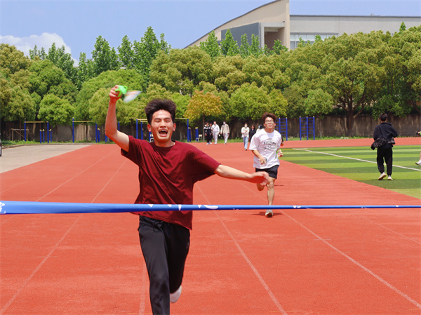随着体育组覃家宁老师的发令枪响,参赛选手们犹如离弦之箭冲出起点,加油呐喊此起彼伏,欢声笑语不绝于耳。迎接选手们的4个充满创意的游戏点分别是:“青春合拍”、“稳中球胜”、“丢掉不开心”、“送你五朵小红花”。由心理协会、校团委、校学生会、校易班同学守擂。校社团联同学负责赛道指引,红十字急救服务社的志愿者们为选手们顺利完赛保驾护航。最终,机电学院集成211班刘于琳同学第一个撞线完赛。