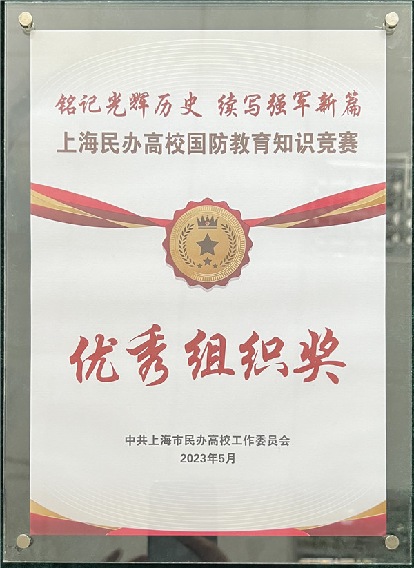 5月26日,以“铭记光辉历史,续写强军新篇”为主题的2023年上海市民办高校国防知识竞赛在上海师范大学天华学院举办。经过校内选拔,教育学院的王婧、邹雨涛、魏鑫楠三位同学代表学校参加了比赛,与来自上海的其他15所高校学生同台竞技。经过激烈而精彩的比赛,我校最终荣获“优秀组织奖”。