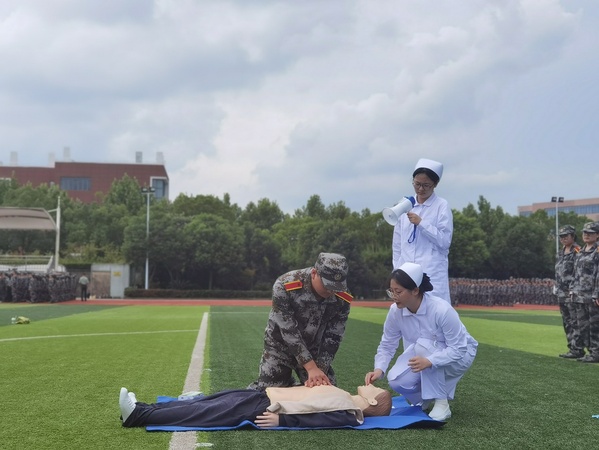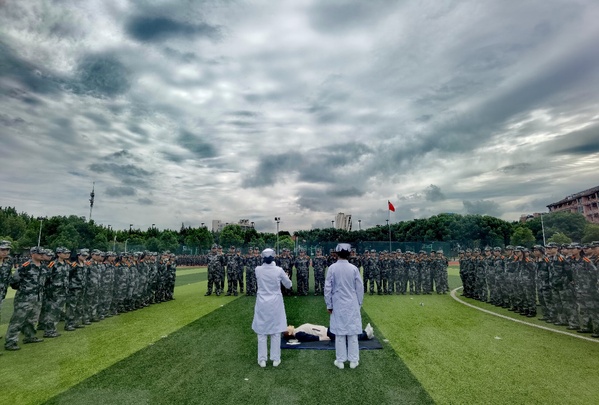 开学仪式,大二学生已经开始紧张而忙碌的军训。为进一步增强学生急救能力,提高他们的自我保护能力,95日,由校武装部主办、护理学院急救社承办的22级军训急救培训活动进行。8位急救社团成员在军训期间对大二全体成员进行了详细的急救相关知识教学。