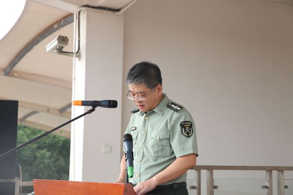 校长王刚讲话中,代表全校师生向31609部队的全体参训官兵致以崇高的敬意和衷心的感谢,向参加本次军训的2023级新同学表示热烈的欢迎,向奋战在军训一线的老师表示慰问。他向参训的2023级新生提出五方面的要求: 一是服从命令,遵守纪律。在训练中大家要严格遵守军训纪律,服从教官指挥,做到令行禁止,严格执行作息时间,不迟到不旷课,做遵守纪律的模范。二是端正态度,克服困难。天气炎热,他希望同学们积极主动地、勇敢地去迎接这次锻炼和考验,训练中牢固树立吃苦耐劳的思想,克服一切畏难情绪,做克服困难的强者。三是认真学习,尊重教官。要求同学们向解放军教官学习,学习他们雷厉风行的作风,学习他们不怕苦不怕累的顽强拼搏精神,学习他们精湛的军事技术,并将这些好作风、好品质转化为自己的训练动力。四是团结协作,争当模范。五是劳逸结合,注意安全。