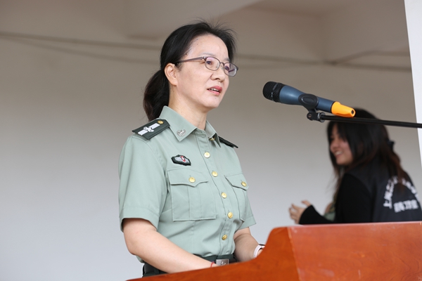 最后,校党委副书记、军训团政委王玉发表讲话。她对本次新生军训成果表示肯定,同时勉励全体新生要以教官为榜样,继续保持良好的军人作风,磨练坚持、团结、能吃苦的精神,不负众望,早日成才!