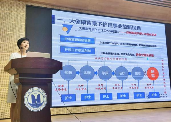 2023年9月19日上午,护理学院在匠兴苑报告厅举行了一场富有意义的新生入学教育。此次活动由护理学院院长张美琴亲自主持,上海同济大学附属同济医院护理部许方蕾主任应邀参加。