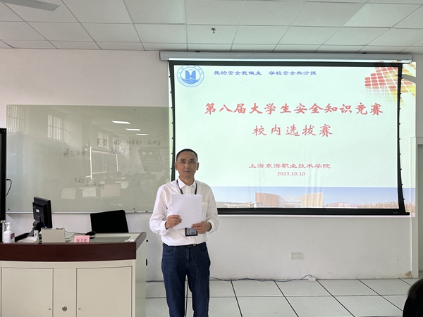 10月10日中午,“上海东海职业技术学院第八届大学生安全知识竞赛——校内选拔赛”在东海源北103实训中心举行,保卫处和各学院指导老师参加竞赛活动。安全知识竞赛以“超星学习通”平台系统随机出题的方式,每人80道题,45分钟内完成作答,系统自动生成每位选手的成绩。经过半个多小时的角逐,选手们均完成了答题,各位选手均取得较好成绩,最终教育学院代表队取得团体第一名的成绩,10月底他们将代表学校参加民办片区选拔赛。