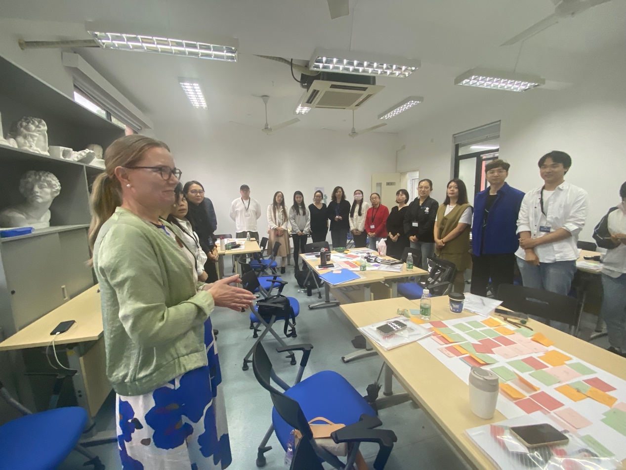 作为市级高水平专业群建设的重要内容之一的、时尚设计专业群海外合作项目——芬兰时尚设计创新课程教师工作坊于2023年10月13日至15日在上海东海职业技术学院艺术设计学院举办。芬兰教育集群培训专家Sanna Nummela和中方老师曹煜担任此次创新课程工作坊的专职教学老师,来自上海东海职业技术学院、贯通对口的上海市现代流通学校、上海市第二轻工业学校、上海市经济管理学校的37位教师学员参加此次为期三天的培训课程。上海东海职业技术学院王刚校长在开课仪式上致辞,艺术设计学院顾惠忠院长主持开课仪式。