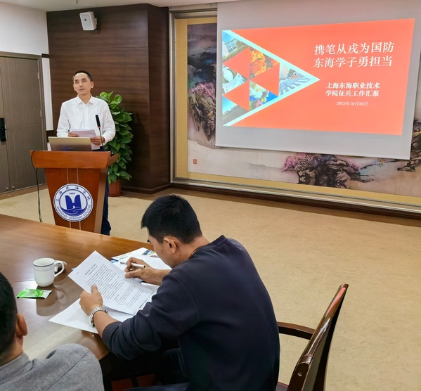 10月26日上午,市教委学生处处长丁良,上海音乐学院党委副书记、副校长徐卫,市教委学生处一级调研员赵靖茹,上海工程技术大学党委武装部部长吕宁,上海电机学院党委武装部部长尚海龙,上海财经大学党委武装部副部长施勇等一行9人,来我校督导调研学校的征兵工作。校党委副书记王玉、学生工作部部长杨瑾、武装部部长蒋久泉及二级学院党支部书记、辅导员和学生代表参加调研。调研会议由上海音乐学院党委副书记、副校长、调研组组长徐卫主持。