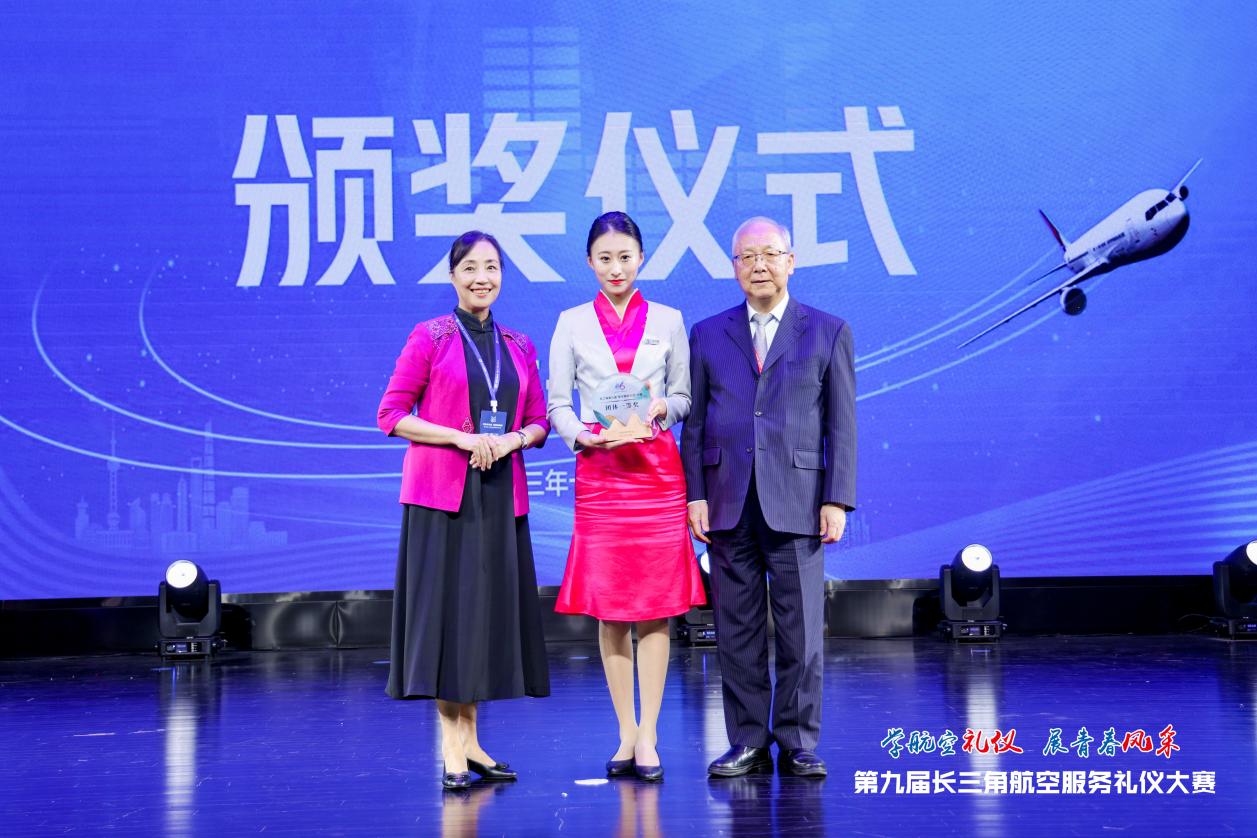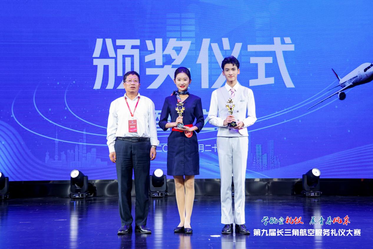 经过激烈的角逐,东海航空学院代表队获得团体一等奖的好成绩。2022级学生车红禹获得“全能之星”、2022级学生孙艺琳获得“人气之星”、2023级学生程昱森获得“智慧之星”。周菁、张静、王腼三位专任教师荣获优秀指导教师奖。全国劳动模范、原上海航空公司民航服务专家吴尔愉老师为航空学院颁奖。