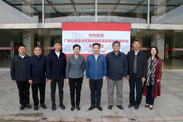 11月16日上午,广西壮族自治区商务厅组织厅属高职、中职院校一行15人来我校开展职教高质量发展调研工作,我校校长王刚、党委书记曹蓉蓉、党政办主任顾文业、教务处处长张居阳、经管学院院长严玉康参与接待交流。