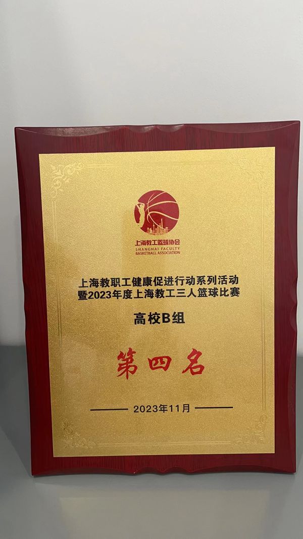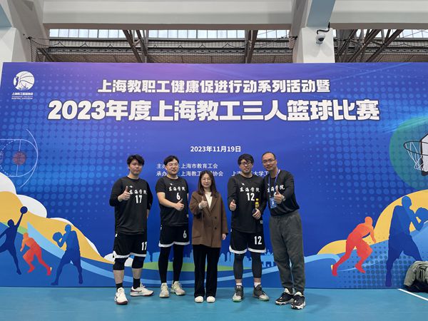 11月19日,由上海市教育工会主办,上海教工篮球协会、上海理工大学工会承办的上海教职工健康促进行动系列活动暨2023年度上海教工三人篮球比赛在上海理工大学顺利举行。来自上海教育系统各高校、普教组、机关组代表队共70支队伍参加比赛。我校参赛队伍由校工会常务副主席刘静带队,基础部副主任覃家宁担任教练,传媒学院教师徐士鋆、黄子峰以及资产处俞家乐组成东海学院代表队,夺得本次比赛高校B组第四名,斩获历史佳绩。