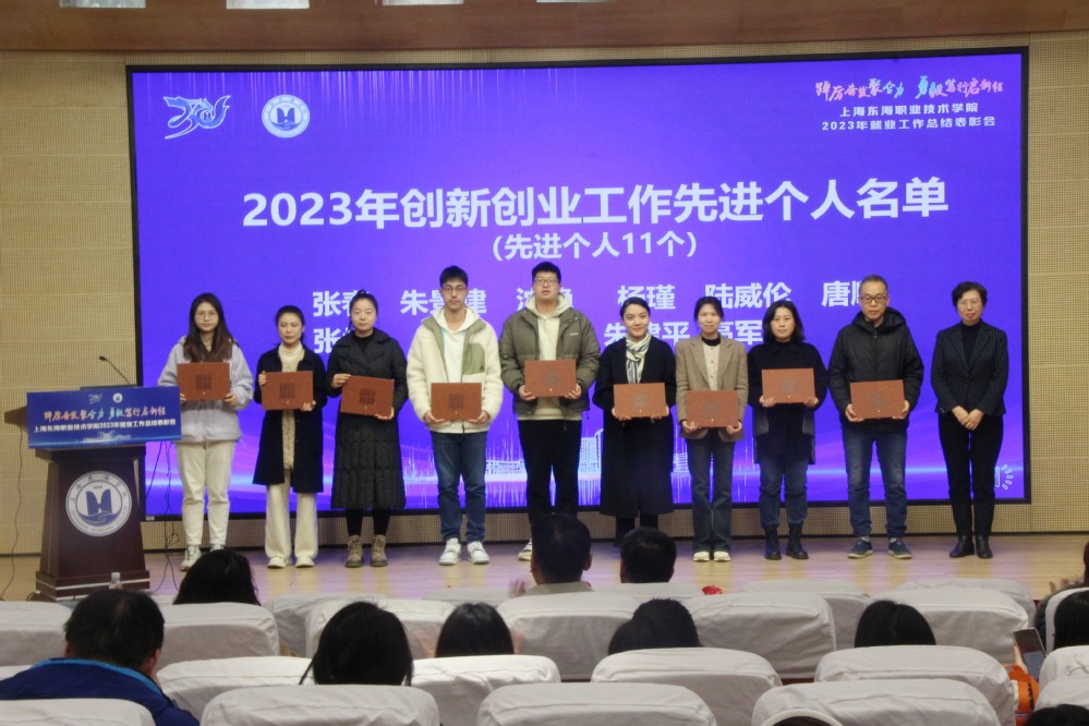 12月27日下午,上海东海职业技术学院2023年就业工作总结表彰大会在匠兴苑学术报告厅召开。我校党政领导、各二级学院院长、党支部书记及行政办主任、各职能部门负责人、全体辅导员、创新创业相关教师及招生就业处全体人员出席本次大会,会议由副校长郁萍主持。