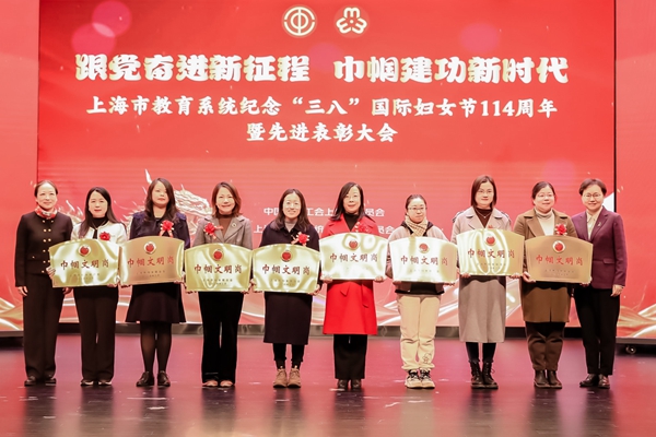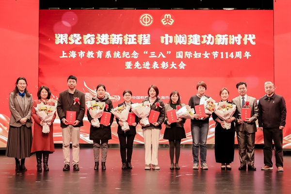 3月6日上午,由上海市教卫工作党委、上海市妇女联合会指导,上海市教育工会、上海市教育系统妇工委主办的“跟党奋进新征程 巾帼建功新时代”上海市教育系统纪念“三八国际妇女节”第114周年表彰大会在上海教育会堂隆重举行。经我校党委推荐申报,上海市教育系统妇工委、教育工会女工委评审公示,我校艺术设计学院荣获上海市巾帼文明岗,马克思主义学院荣获上海市教育系统巾帼文明岗,航空学院张敏、陈昊鹏夫妇荣获上海市教育系统第十四届比翼双飞模范佳侣,学工部王飞、徐福岩夫妇获上海市教育系统第十四届比翼双飞模范佳侣提名奖,以上荣誉在本次大会中予以表彰。