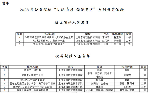 为深入学习贯彻党的二十大精神,落实立德树人根本任务,根据《中共上海市教育卫生工作委员会上海市教育委员会关于开展2023年职业院校“技能成才强国有我”系列教育活动的通知》(沪教委德〔2023)14号)。作为此次活动承办方,学校领导高度重视,由学生工作部组织牵头,协同马克思主义学院、各二级学院师生参与。