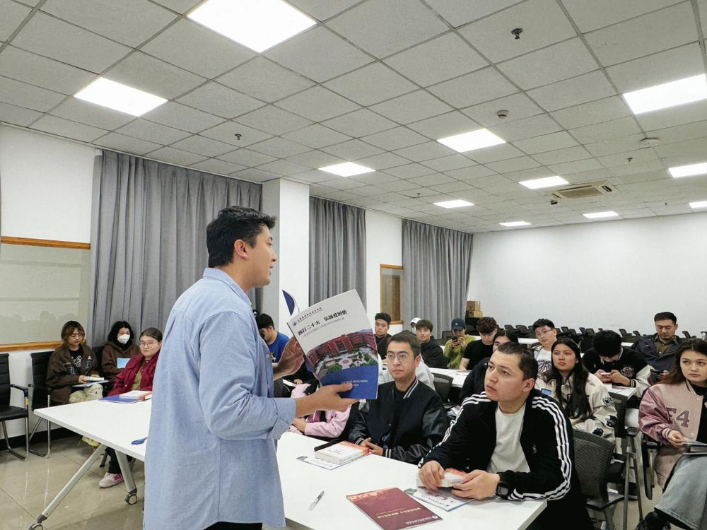 会上,艾尼扎提向大家讲述了自己读书受益的深刻感受,他说:“一个人的精神发育史就是他的阅读史,大家要积极参与到读书节活动中来,读红色经典书籍、读经典名著,读诗、读词、读曲、读天下文章,促进自己生在思想上成长进步,汲取精神力量,陶冶思想情操。”学工部新疆办的老师们准备了一份精心挑选的红色经典书籍的清单给学生,重点推荐了《中国共产党简史》《习近平与大学生朋友们》等图书并发书给学生们,学生们接过书籍,纷纷表示要认真阅读,深刻领会书中的精神内涵。
