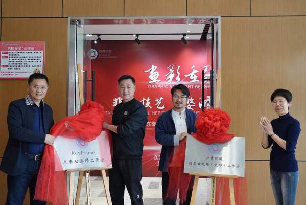 此次展览开幕的同时,传媒学院大师工作室也正式投入运作,学院聘请歙砚工艺大师、非遗省级传承人胡慧君老师和二级美术师、动画片《大耳朵图图》主创陈华老师为丹青砚道(大师)工作室和KeyFrame未来动画师工作室主理人,校长贺瑛、副校长严玉康为两个工作室揭牌。非遗省级传承人胡慧君为展览带来了百花奖金奖歙砚获奖作品《秋水共长天一色》以及大量优秀的歙砚作品。这些作品充分展示了歙砚的独特魅力和精湛技艺,引起了观众们的极大兴趣。