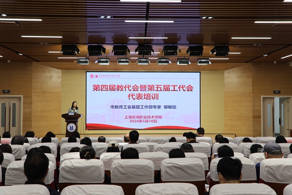 在我校第四届教代会暨第五届工代会第二次会议即将召开之际,为着力提升我校教代表的履职能力,明确代表职责,5月10日上午,校工会在匠兴苑学术报告厅举行教代会代表专题培训会。本次培训会特邀上海立信会计金融学院原工会常务副主席、现任学校关工委副主任、兼任上海市教育工会基层工作部专家工作邬敏懿为代表们作专题报告。校党政领导、各二级学院和职能部门共70余名教代表出席本次培训,会议由校工会常务副主席刘静主持。
