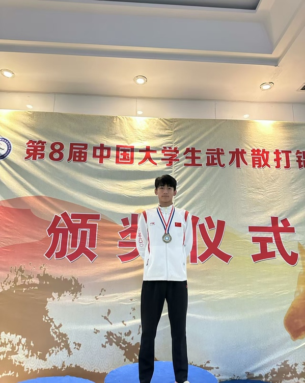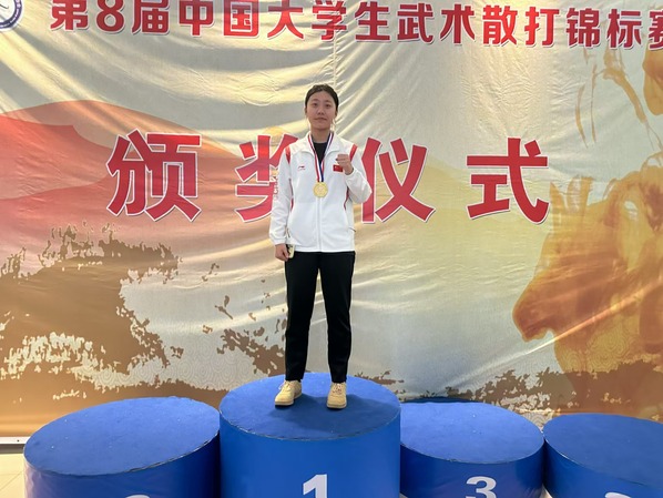 5月23日,第8届中国大学生武术散打锦标赛圆满落下帷幕,此次锦标赛由中国学生体育联合会主办,汇聚了来自全国165所高校的1300余名武术散打健儿。我校学生代表队在教练马程老师的带领下,在激烈角逐中斩获1金1银1铜的优异成绩。