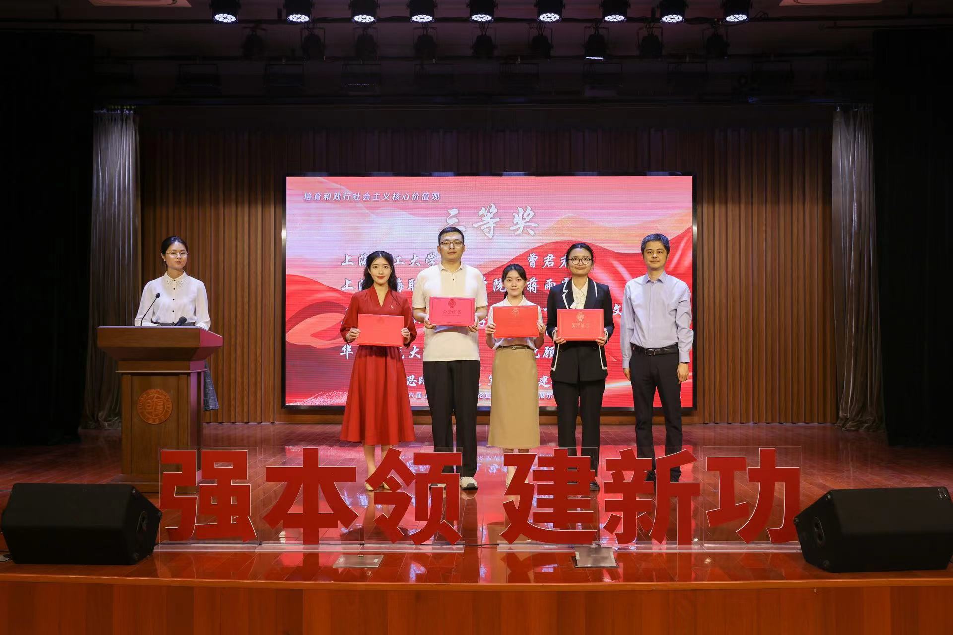 5月24日,由市委宣传部、市教卫党委、市教委指导,由上海教育系统网络文化发展研究中心、上海市大学生理论宣讲联盟主办,上海市大学生理论宣讲联盟秘书处、复旦大学党委研究生工作部承办的“培育和践行社会主义核心价值观——学思践悟强本领,笃志奋斗建新功”第六届上海大学生理论宣讲微课程大赛决赛暨展示活动在复旦大学举办。由我校马克思主义学院教师王晓默指导的教育学院学前221班学生蒋雨霏在本次活动中荣获三等奖。