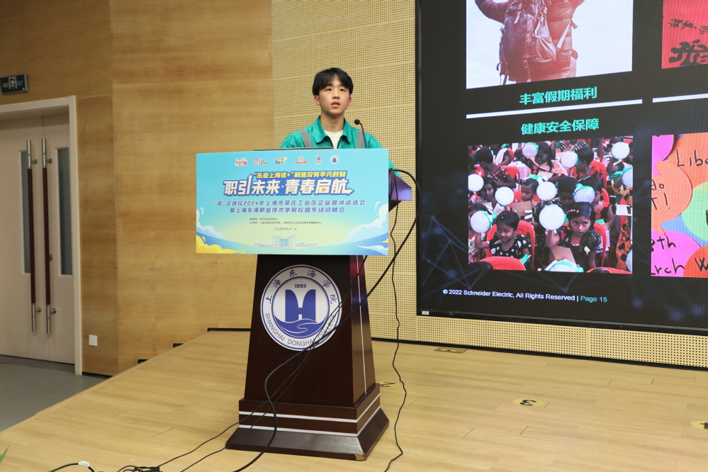 2024届机电一体化技术专业毕业生代表程洪强畅谈了自己初入职场的欣喜、困惑以及工作的感受等,他鼓励同学们要不断学习新知识、掌握新技能、增长新本领,成长为技能型人才。程洪强现就职于上海市莘庄工业区的上海施耐德低压终端电器有限公司,并于今年3月顺利与公司签约。