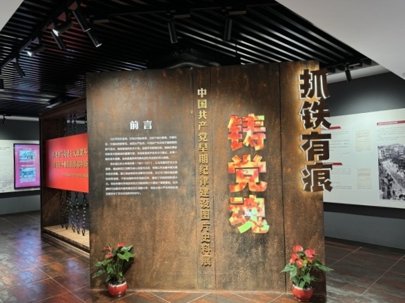 《抓铁有痕铸党魂》中国共产党早期纪律建设图片史料展围绕“中国共产党早期纪律建设”主题,分为“思想探源”“铁纪萌芽”“革命实践”“机构首创”“继续前行”五个单元。通过一幅幅历史图片、一份份历史资料,展示了中国共产党“纪律立党”的历史渊源和早期纪律建设历程,彰显了中国共产党勇于自我革命的鲜明品格和最大优势。中国共产党从诞生之日起,就高度重视自身纪律建设。建党初期,党通过了第一个党纲,制定了第一部党章,明确了民主集中制原则,开展了工会廉政建设,并通过严明党内纪律,维护了党的纯洁和统一。中共四大是党从小团体发展转变为大政党的重要转折点,此后党员人数迅速增加,党组织迅速扩张,党通过强化中央权威,完善党内监督、巡视和报告等制度,加强了组织纪律性。展览对《中国共产党第一个纲领》中的纪律规定和《中国共产党章程》关于开除党员的六项规定,都做了清晰的整理和展示。在《全面从严治党,永远在路上》警示教育案例展厅,大家通过多媒体沉浸式学习,感悟“八项规定激浊扬清,点滴之间改变中国”,从而以案示警存戒惧,以案明纪守底线,不断增强党性原则和纪律观念,强化遵守纪律的自觉,把遵规守纪印刻在心,内化为言行准则。