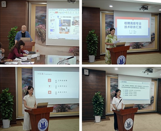 在答辩环节,4名校聘高级专业技术职务申报者分别从师德师风(课程思政参与情况、支部活动或学院工作参与情况)、教学能力(学生评教情况、出版教材、教学比赛获奖等)、科研能力(论文、专著、专利、主持或参与的项目等)、育人成果(指导学生竞赛等)等四个方面展示取得的成果。