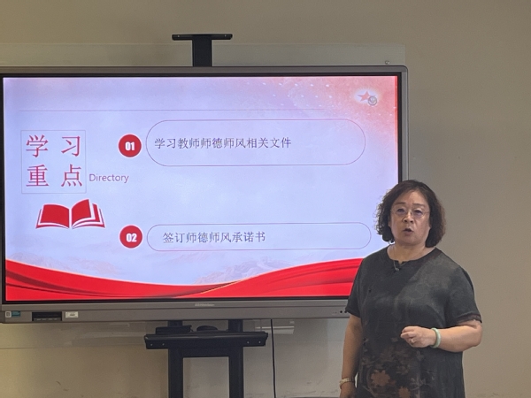 航空学院副院长张敏带领全体教师学习《上海东海职业技术学院师德师风承诺书》。她强调,师德是教师职业精神的核心,它关系到教师的形象和教育的质量。教师们要时常反思个人行为,进行自纠自查、及时整改,做一名遵守教育法规、尊重学生、公正无私、终身学习的合格教师。