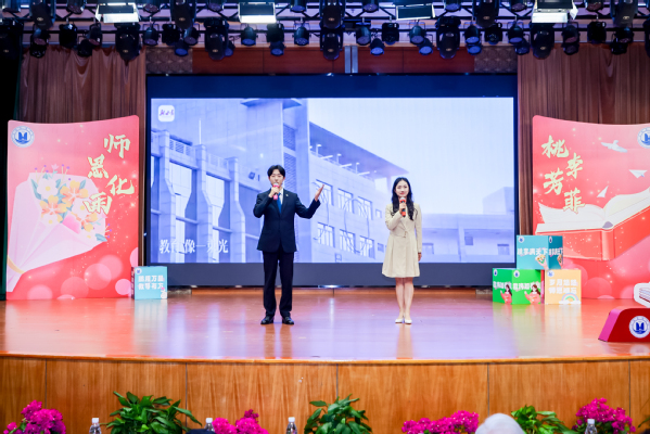 春风化雨,润物无声;桃李不言,下自成蹊。老师们的智慧和奉献,就像夜空中的星辰,为学子们指引方向,照亮他们的人生道路。他们的教诲如同春雨,滋润着学生们的心田,使他们茁壮成长。2024年9月10日,是我国第40个教师节。在教师节来临之际,东海学院于9月6日举办了庆祝第40个教师节大会。当天下午,创校董事、校党政领导班子成员及近400名教职员工齐聚东海源报告厅,教师节庆祝大会在振奋人心的国歌旋律中拉开帷幕,校长助理张居阳主持大会。