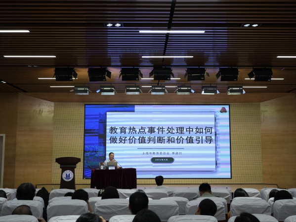 李进付教授是上海市首届法治实务专家、上海市青年法律人才,报告中,他以“教育热点事件处理中如何做好价值判断和价值引导”为题,结合自己的专业知识和实践经验,根据高校工作的实际需求,通过具体工作案例,深入剖析了学校常见事项的解决思路与方案。这不仅是一次学习的机会,更是一次思想的碰撞和智慧的交流。李进付巧妙地结合了影视作品《第二十条》及近期的教育热点舆情,形象地告诉大家法治并非总是一副冰冷的面孔,在实际工作中应当是有温度、有温情的。他特别提到,一线教育工作者要关注关爱学生,坚持以学生为本,在实际工作中,要辩证看待问题、及时回应问题、真诚解决问题;要综合运用情、理、法、义工具,善用对话沟通的方法和艺术,追求法律效果、政治效果、社会效果相统一。做好一线工作,“既要尊重规律,又要尊重实际;既要会做技术判断,又要善做价值判断;既要说得通,又要做得通;既要踩刹车,又要加油门。要善做价值判断和价值引导;敏锐发现问题,精准分析问题,及时解决问题。” 李进付指出。他提醒教育工作者不能只做技术判断,而忽略价值判断,因为法律的实施不仅仅是条文的机械执行,更是一种价值选择和人文关怀的体现。