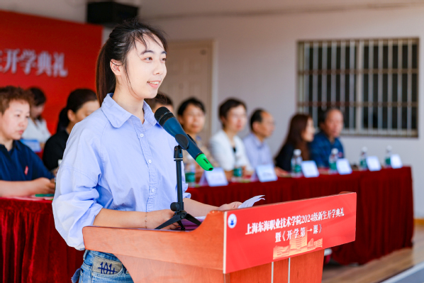黄嘉怡则从学长的角度分享了自己在东海学院成长的点滴,并为新生开启大学生活提出了建议,鼓励新生们以勤勉的态度、丰富的知识、精益求精的技能,把技能强国的梦想贯穿于学业全过程、融会在实现中华民族伟大复兴的实践中,通过大学生活的历练,成为更好的自己,成为母校的骄傲。