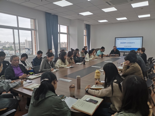 10月25日,基础部教师组织政治学习,深入学习领会习近平总书记在全国教育大会上的重要讲话精神和全国教育大会精神。会议由基础部党支部书记覃家宁主持。