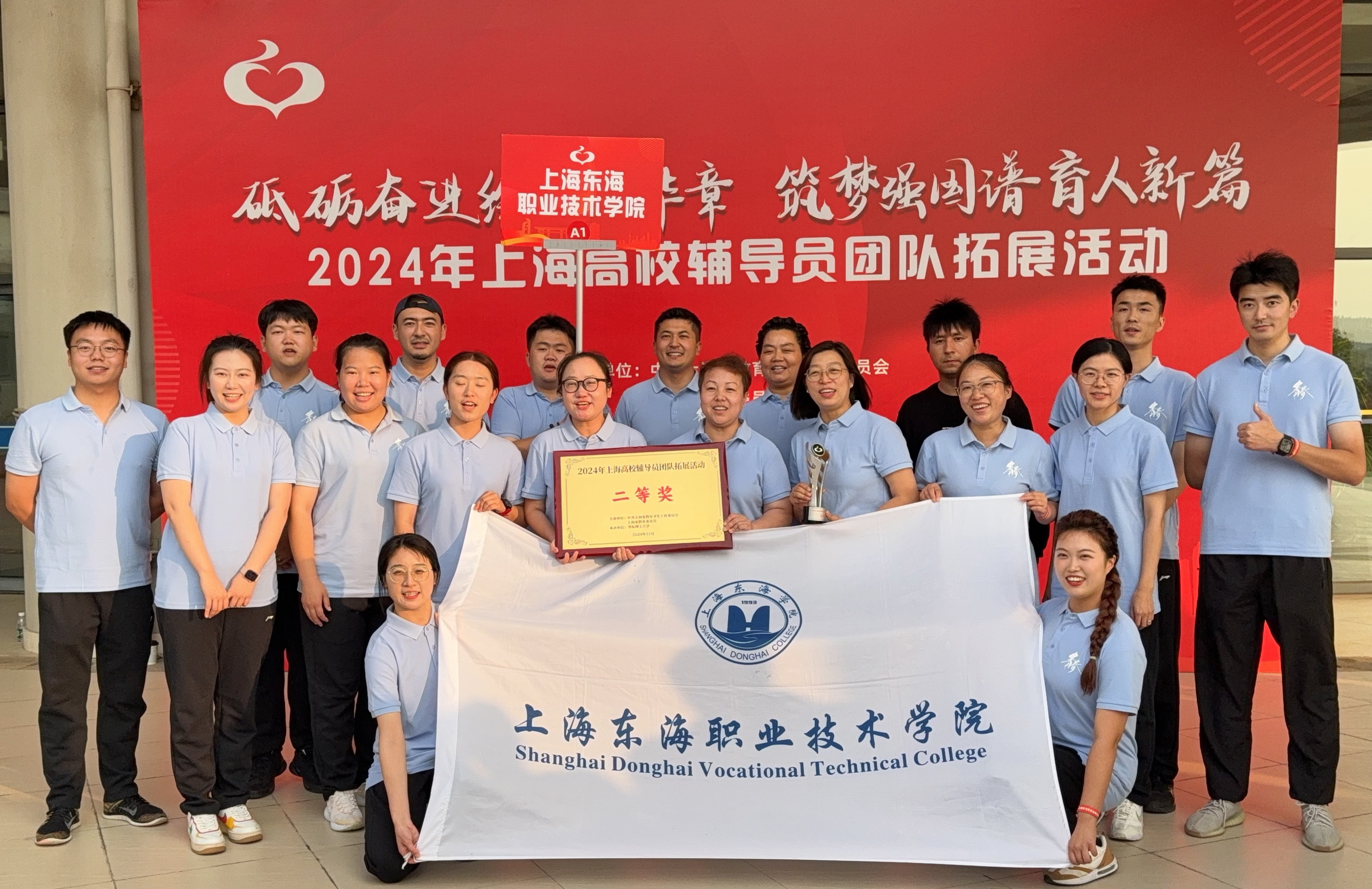 由中共上海市教育卫生工作委员会、上海市教育委员会主办,华东理工大学承办的2024年上海高校辅导员团队拓展活动,日前在华东理工大学奉贤校区圆满举行。校党委副书记王玉出席了此次活动,党委学生工作部部长岳宝华、副部长王莉娜带领我校辅导员代表组成参赛队伍,与来自全市55所高校的千余名辅导员代表同场竞技,展现风采。学院党支部书记也亲临现场,为辅导员们呐喊助威,加油打气,荣获团体二等奖。