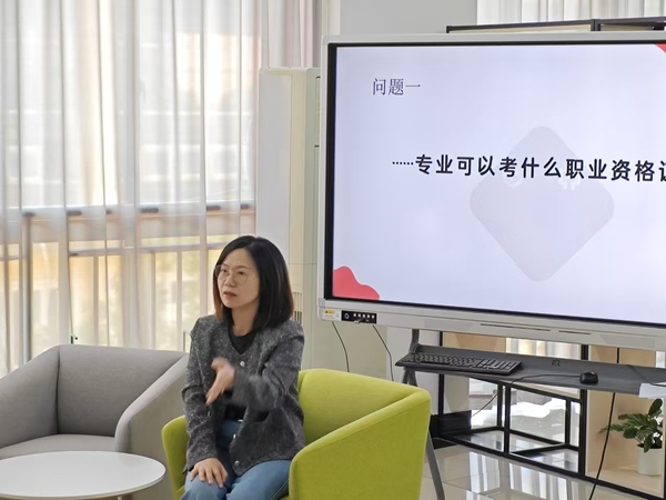 郑梅青是上海市课程思政教学名师、东方英才教师项目获得者,教改课题曾获上海市教学成果特等奖、国家教学成果二等奖。座谈会现场气氛热烈活跃,同学们怀着对大学生活的憧憬和对未来的期待,积极踊跃地提问,他们围绕考证、实习、技能比赛、升学等关键问题,抛出了一个又一个的困惑。面对同学们的热情提问,郑梅青结合实际案例以渊博的知识、丰富的经验和耐心的态度,逐一进行解答。