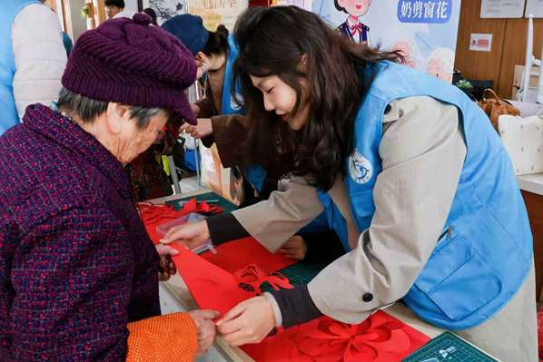 志愿服务市集现场,各学院结合专业特色打造的志愿服务摊位亮点纷呈,专业优势与志愿温情完美融合。传媒学院志愿者为老人拍摄肖像照,定格岁月温情;护理学院提供血压、血糖检测,守护老人健康;艺术设计学院开展漆扇、艾草锤DIY活动,让老人感受传统工艺魅力;机电学院组织手绘月球灯活动,点亮老人童心;航空学院教授创意剪纸技巧,传递美好祝福;信息工程学院举办趣味套圈互动,增添现场欢乐;经管学院开展反诈知识宣传,为老人筑牢安全防线;教育学院设计手脑健康趣味游戏,陪伴老人唠家常、强体魄。各摊位分工明确、温情满满,让老人们在沉浸式体验中收获温暖与快乐。