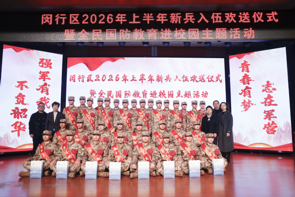 我校举办闵行区2026年上半年新兵入伍欢送仪式暨全民国防教育进校园主题活动
